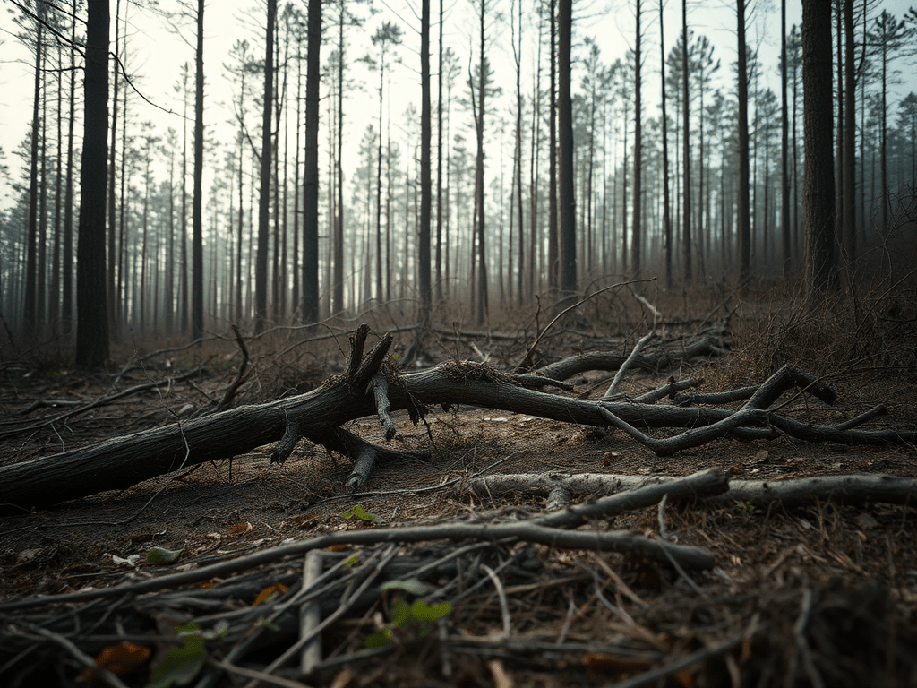 This story highlights the devastating impact of climate change and overproduction on our natural environment. A once-thriving forest, planted with care and flourishing just a year ago, has now been destroyed. A beetle infestation, fueled by rising temperatures, ravaged the trees, leaving no choice but to cut them down.